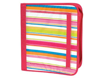 Need a stylish way to carry your homework and important papers? Tired of boring 3-ring binders? A piece from the Room It Up Zip 3 Ring Binder Collection will help you out. This fun, brightly colored Room It Up Preppy Stripe 3 Ring Binder will help you keep all your paper, assignments and projects organized. There is even a hidden exterior Velcro pocket and a bonus clear pvc pencil case so you will have lots of places to store all of your gear. Makes a great gift and even lends itself to monogramming.Made of Polyester. Size: 11.75" x 13.25".